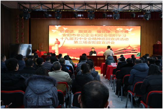 2020年12月30日下午3時,安陽市非公企業(yè)和社會組織公司十九屆五中全會精神巡回演講活動在鑫達(dá)公司多功能廳舉行。安陽縣組織部,非公企業(yè)黨工委,非公社會組織黨工委,縣屬非公企業(yè)和非公組織負(fù)責(zé)人,各鄉(xiāng)鎮(zhèn)負(fù)責(zé)人參加了會議。